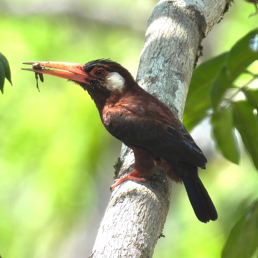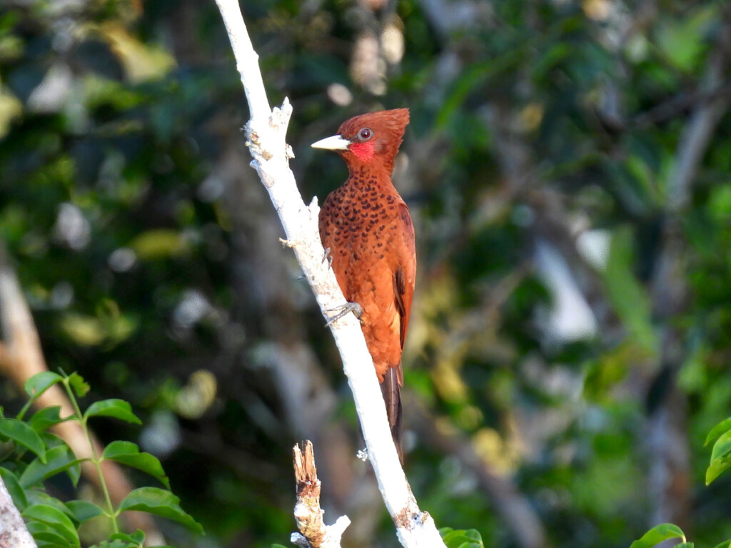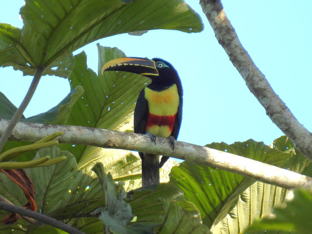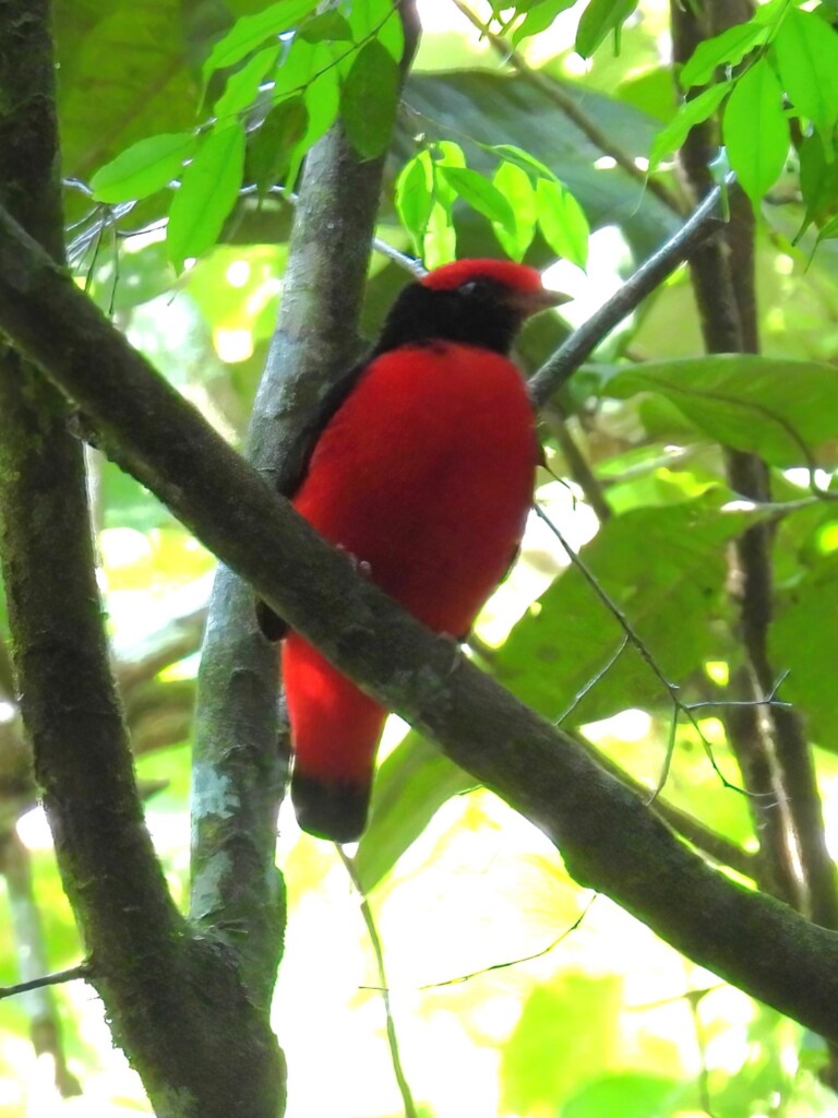 We did several canoe paddles, including one that took us to a hiking trail in pursuit of a rare bird sometimes seen in the area. The challenging 5-mile hike was well worth it, as we were rewarded with great views of the Black-necked Red-Cotinga. When it’s a lifer for the local guide, you know it’s a good bird.