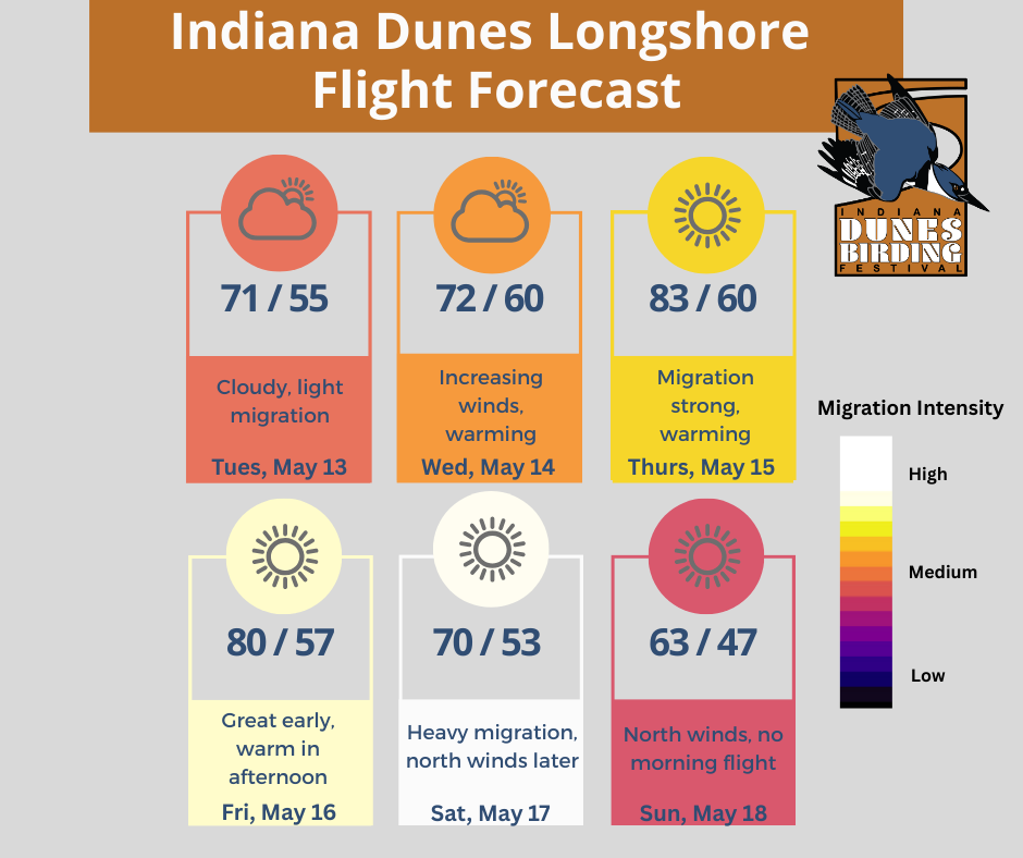 It’s Indiana Dunes Birding Festival week and and we couldn’t ask for a better forecast to observe the wonders of morning flight from the observation tower. Above all, timing is everything! If you’re wanting to see the best of the bet, here’s our tips: