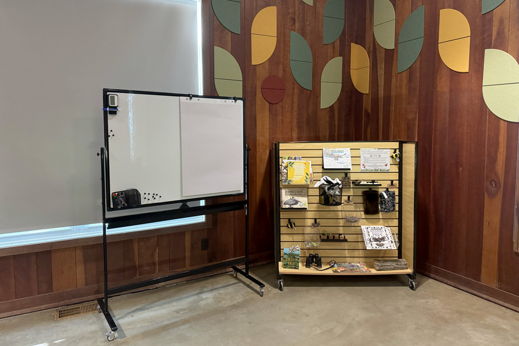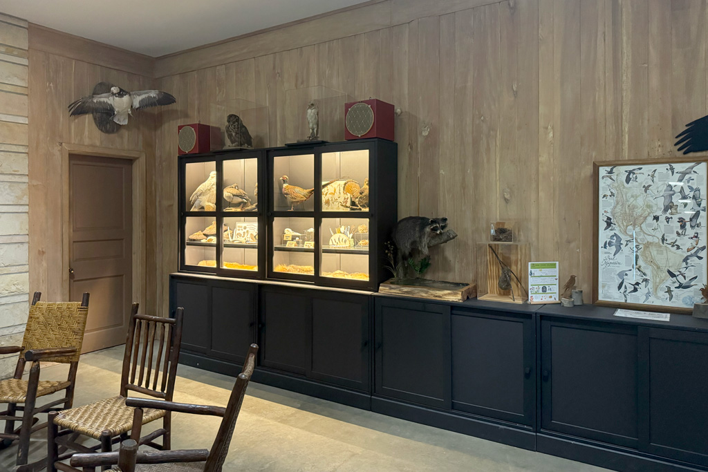 Other updates add to the overall visitor experience. New wall-mounted display boards help us share program schedules, announcements, and educational information more clearly. Added shelving gives us space to better organize and feature hands-on learning materials and natural history artifacts that spark curiosity. Fresh brochures and exhibits provide more ways for visitors of all ages to explore the world of birds and conservation. And a new donor tree board in Brooks Hall gives us a dedicated way to thank those who support the sanctuary.