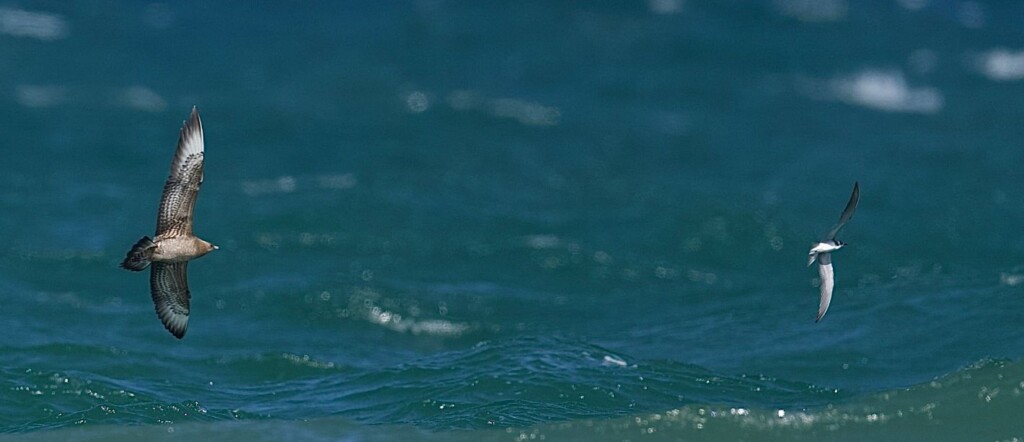 But here’s the catch: figuring out which jaeger you’re actually looking at is notoriously difficult. Lighting, distance, and feather variation can turn the same bird into a dozen different impressions depending on who’s watching. Our point counters wrestle with that reality every fall, often needing long looks, photos, and plenty of patience before putting a name on a bird. Rather than dive into all those fine-grain details here, we recommend this excellent breakdown from the Chicago Birding Alliance: Getting to Know Juvenile Jaegers with the Macaulay Library