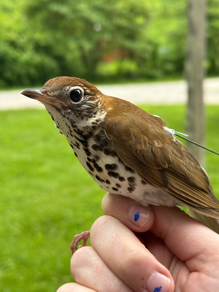 We’ve officially banded the first four Wood Thrushes of the season, two at Sam Shine Preserve (2 males) and our first pair at Mary Gray Bird Sanctuary, a male and female. It’s a strong start. Twenty-one more birds will soon join the class of 2025. Our first adoption certificates will go out in the coming weeks.