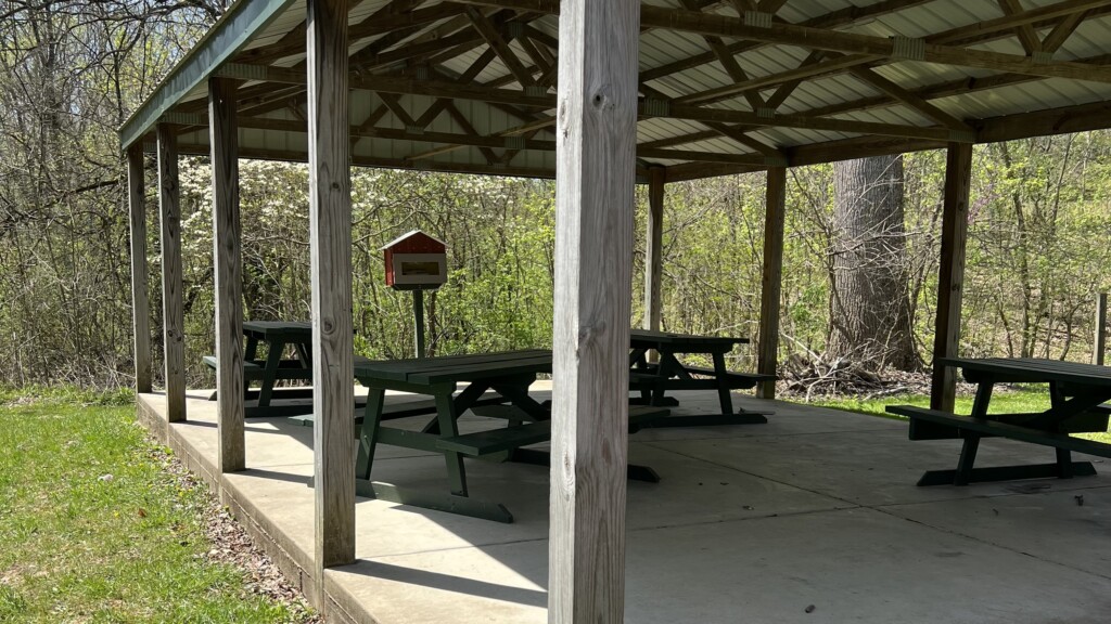 Because it’s located within the sanctuary’s central area, the Large Shelter serves as a hub for many Indiana Audubon events, including field lunches, volunteer appreciation picnics, and youth education programs. It can comfortably accommodate large groups and is especially well-suited for day-use events where visitors want quick access to nearby trails, the birding blind, and Brooks Hall. A take a book, leave a book bird themed library is available at the shelter.