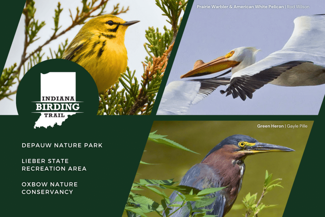 DePauw Nature Park and Lieber State Recreation Area, both located in Putnam County, along with Oxbow Nature Conservancy in Dearborn County, are part of the Indiana Birding Trail's 2026-2027 update.