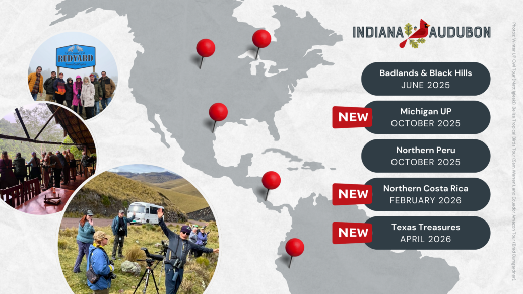 Indiana Audubon is thrilled to announce two new exciting guided birding trips for 2025, along with our previously announced adventures! Whether you’re a seasoned birder or new to the hobby, these trips promise unforgettable experiences while contributing to bird conservation efforts on the ground. 2025 Adventures 📍 SAX-ZIM BOG,...