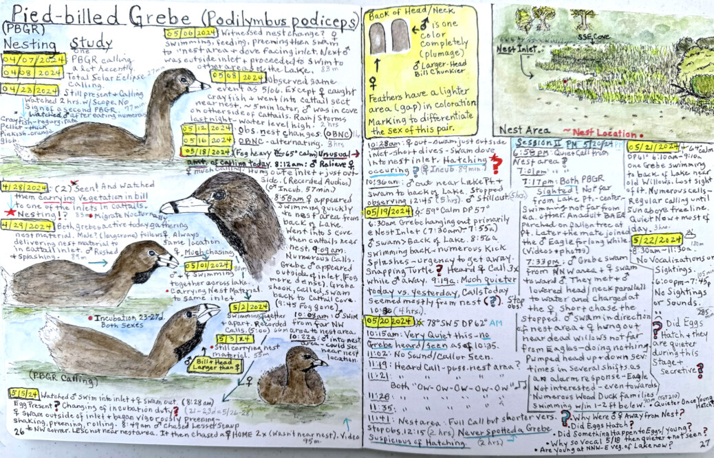 When nature journaling, always remember that your purpose is not to be an artist. You are using words, pictures, and numbers to document your observations and experiences. Pay close attention to birds and watch their behaviors, their body language, and use of songs and calls. Focus on how they...
